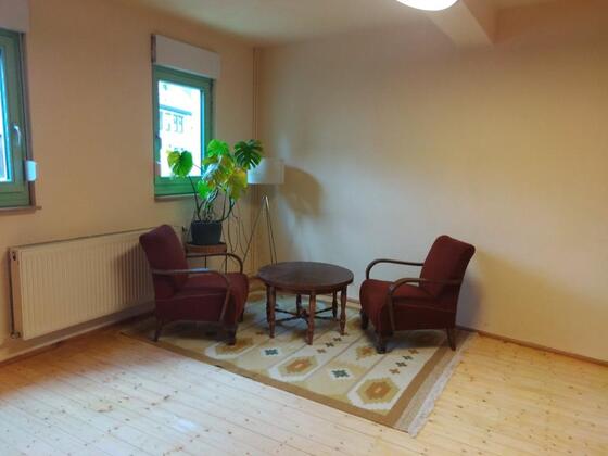 Es stehen in Kranichfeld, Anger zwei miteinander verbundene Räume im Erdgeschoss für Menschen zur Verfügung, die tageweise Räumlichkeiten für ihre selbstständige Tätigkeit nutzen möchten.
